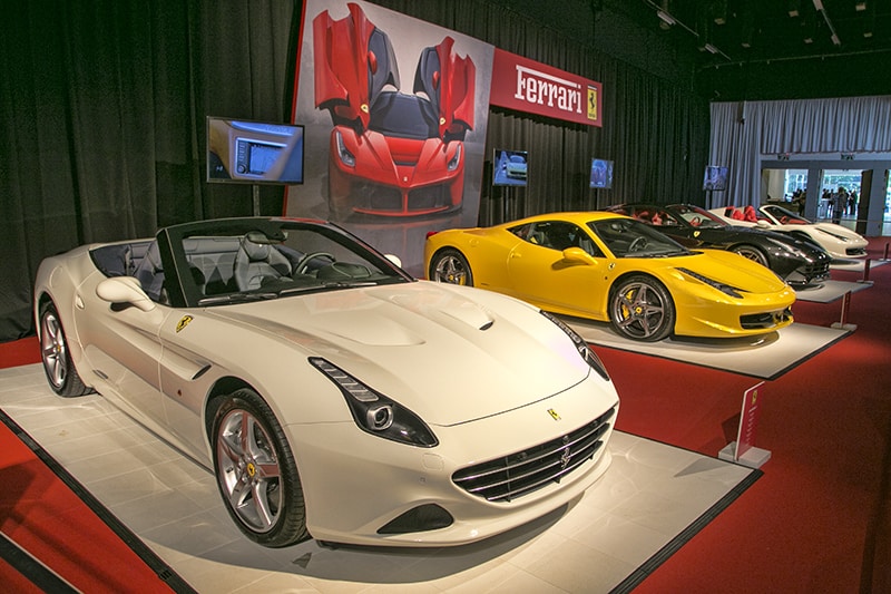 באולם של פרארי יש כמה דגמים וגם למבורגיני.