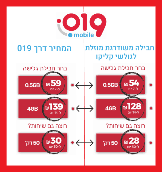 חבילת גלישה ב-019 מובייל עם הנחה מיוחדת לגולשי "דני בר-טיולים וסגנון חיים". 8% הנחה על כל חבילות הגלישה והשיחות.