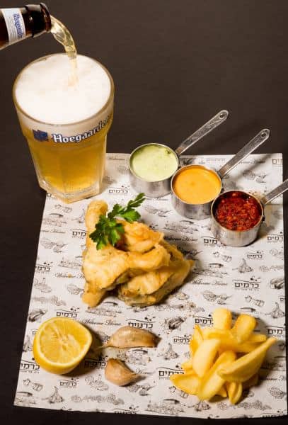 - לברק פרוס בציפוי בצק בירה הוגרדן וייט, בליווי מבחר רטבים, קונפי שום, לימון ופוטאטוס מוגש בליווי בקבוק בירה הוגרדן וייט – 135 ₪