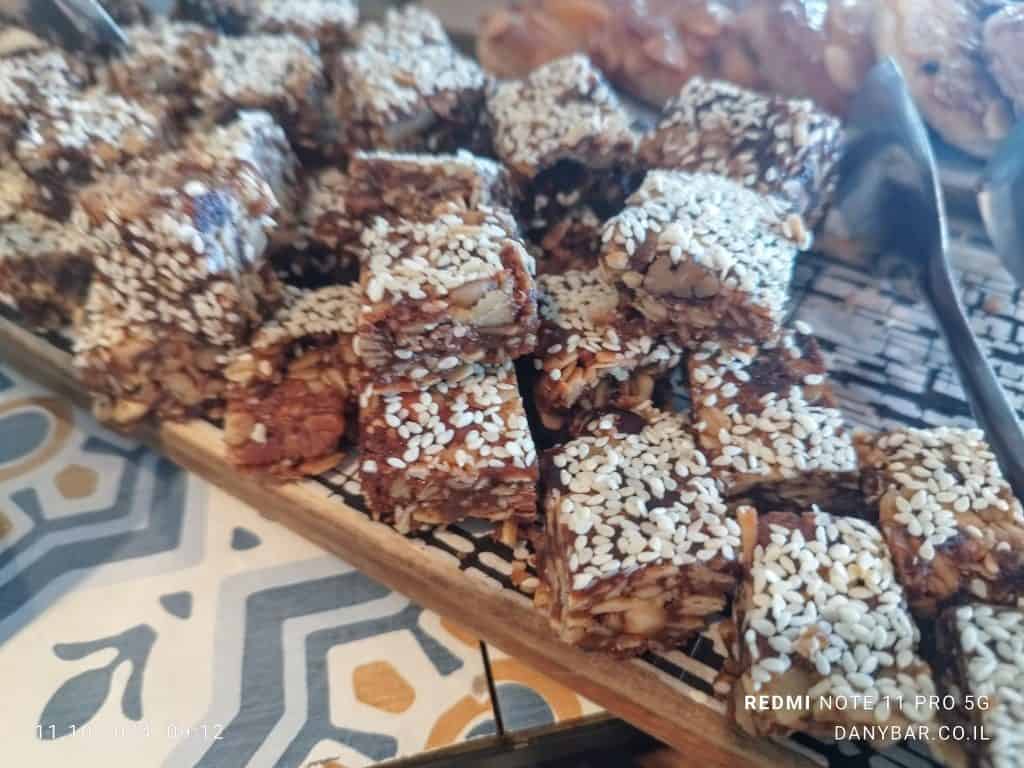- מוסיפים את הגרנולה, קורנפלקס, פיסטוקים ושקדים ומערבבים את העיסה החמה לקבלת עיסה אחידה