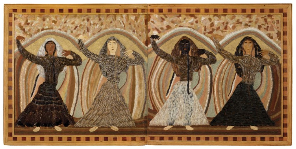 מלך ברגר, רקדניות ידידות, 1982, טכניקה מעורבת על דיקט, אוסף האמן