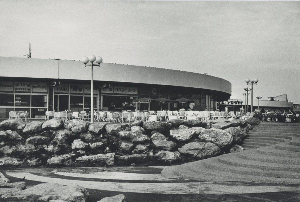 דולפינריום, תל-אביב לפני שנהרס. מבט מדרום אל חזית בית הקפה, 1982 בקירוב (צילום נחום זולוטוב)