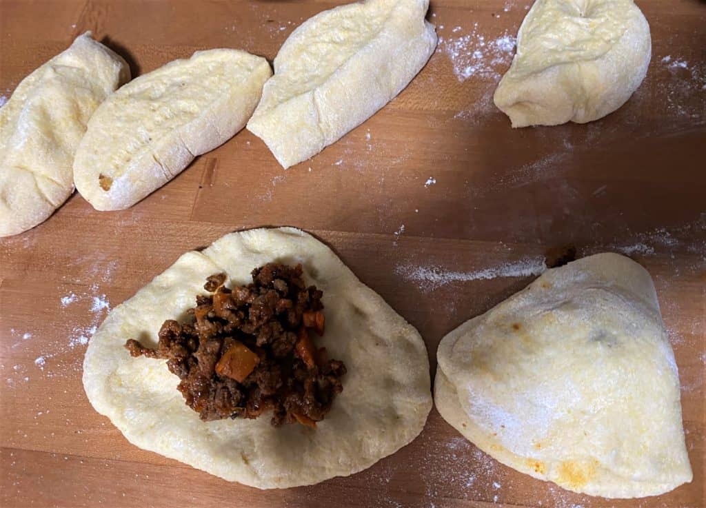 11. מניחים מלית במרכז וסוגרים תוך צביטה של הבצק והכנת כדור ממולא
