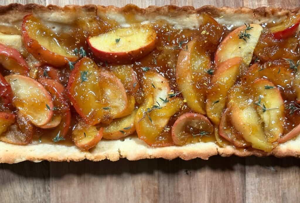 גרסה מתוקה וחגיגית לקלאסיקה הצרפתית המפורסמת טארט טאטן ||| בעוד שטארט טאטן המקורי עשוי מתפוחי עץ מקורמלים בחמאה וסוכר, כאן הדבש מחליף את הסוכר הלבן ונותן לעוגה אופי עמוק, ארומטי ומעט מתובל ||| הטעם המתוק אך לא חד-ממדי, עם עומק טבעי של דבש, חמאה וחום הפירות האפויים יחד עם קינמון וציפורן מדגישים את הארומות ||| עוגה שמתאימה במיוחד לאירועים חגיגיים כמו ראש השנה או שבתות חורפיות, כי היא משלבת מראה אלגנטי עם טעמים מחבקים של בית ||| כל הפרטים והמתכון בהמשך…