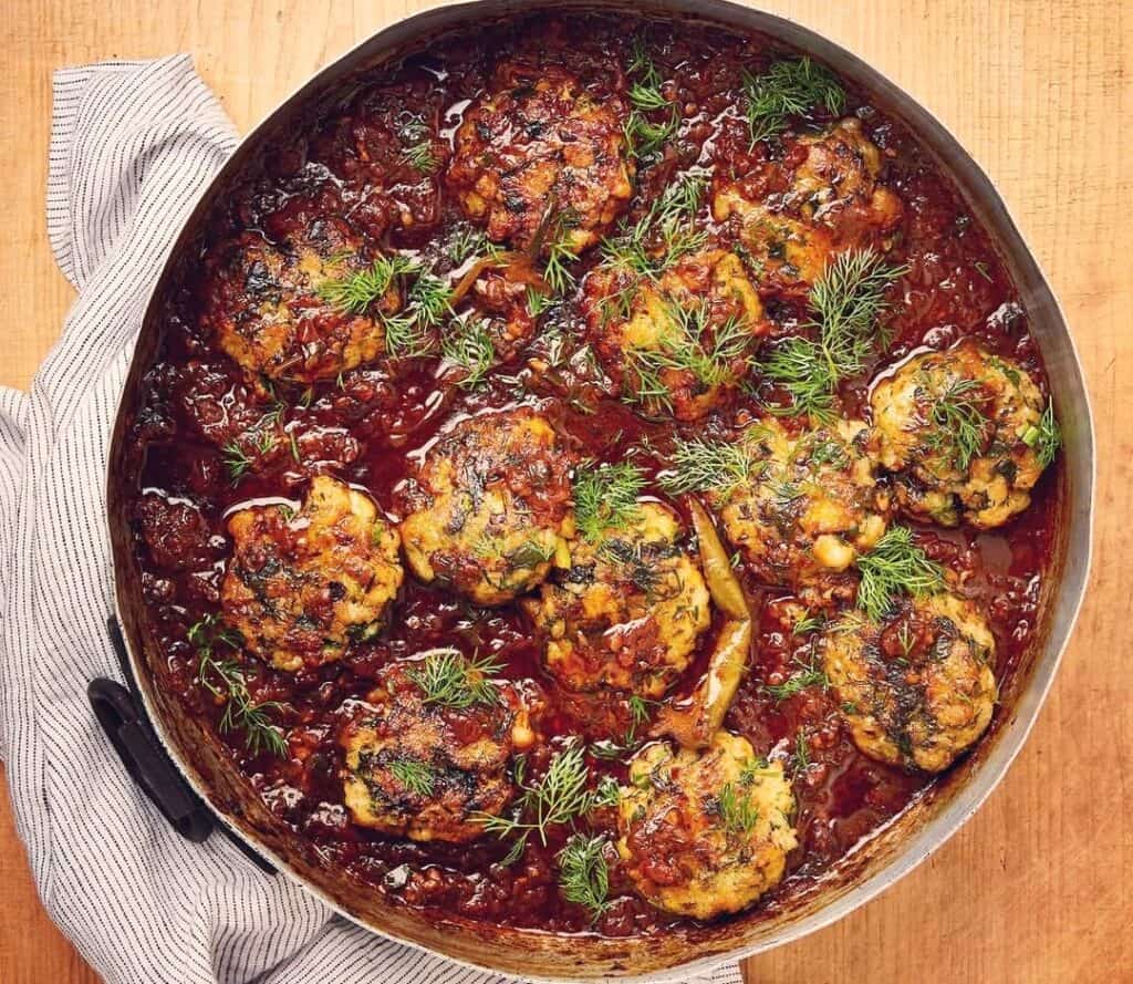 במטבח המרוקאי לתבשיל קציצות דגים יש כמה שמות מקובלים, תלוי באזור ובסגנון, אבל השם הנפוץ והקלאסי ביותר הוא קֶפְטָה דֶה פּוּאַסוֹן Kefta de Poisson ||| זה תבשיל עמוק, עשיר ומנחם, שמחבר בין מטבח ים-תיכוני למטבח צפון-אפריקאי קלאסי ||| השילוב בין סלמון לדג לבן יוצר מרקם מאוזן: עסיסי אך לא שומני מדי, רך אך עדיין יציב ||| תערובת העלים הירוקים יחד עם שום, בצל, גרידת לימון ותבלינים כמו כמון וקימל, מעניקים לקציצות ארומה רעננה וטעם עגול, עם נוכחות ברורה אבל לא משתלטת ||| הטיגון הראשוני של הקציצות חשוב ליצירת שכבת טעם עמוקה ולשמירה על צורתן בהמשך הבישול הארוך ברוטב ||| הרוטב עצמו הוא לב המנה: שמן זית, שום, פלפלים טריים ויבשים, עגבניות, לימון טרי ולימון כבוש יוצרים רוטב אדום, חמצמץ-מתקתק, חרפרף ומלא אופי ||| החומוס סופג את הטעמים ומוסיף גוף ושובע לתבשיל ||| הבישול האיטי מאפשר לקציצות לספוג את הרוטב עד הסוף, כך שכל ביס עמוק ומלא שכבות ||| מנה חגיגית, שמתאימה לשבת, לאירוח או לארוחה משפחתית, כזו שחייבת חלה טרייה ליד – כדי לא להשאיר אפילו טיפה מהרוטב ||| כל הפרטים והמתכון בהמשך…