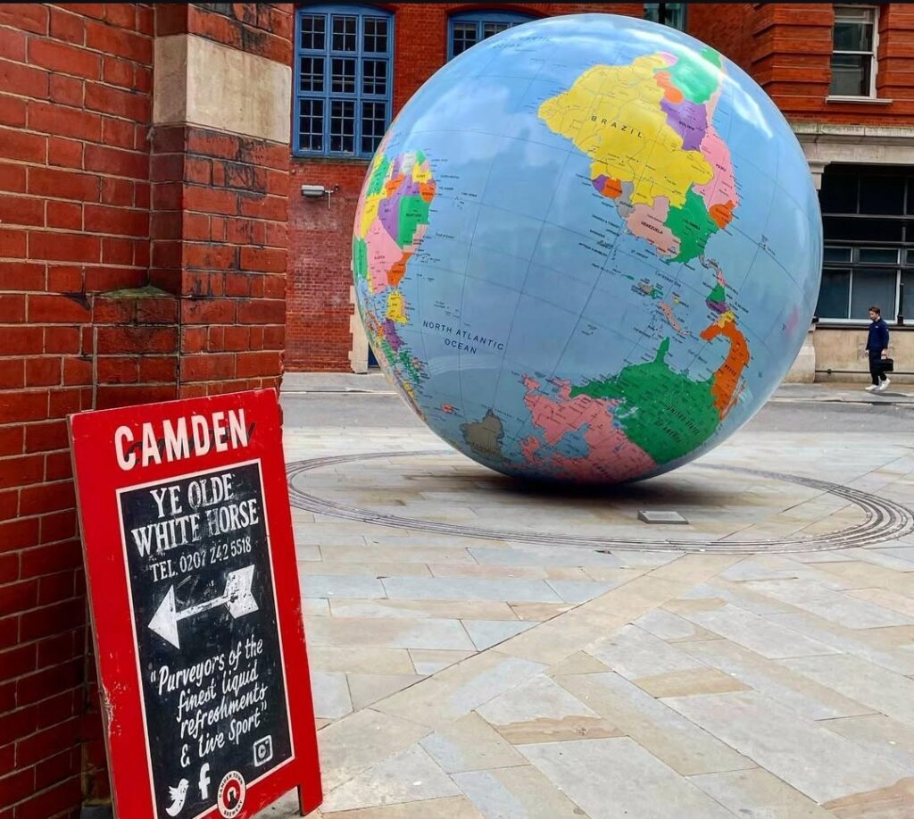 פסלו של האמן זוכה פרס טרנר מארק וולינגר Mark Wallinger, ממוקם ברחוב שפילד, לונדון, בקמפוס של בית הספר לכלכלה של לונדון London School of Economics. השם "עולם התהפך" מגיע מבלדה אנגלית מהמאה ה-17. הפסל, שקוטרו 4 מטרים, כולל כדור הארץ המונח על הקוטב הצפוני שלו ונחנך במרץ 2019. יצירת האמנות עוררה מחלוקת בשל הצגת האי טייוואן כישות ריבונית, ולא כחלק מהרפובליקה העממית של סין. הפסל נמצא בכתובת:1 Sheffield St,