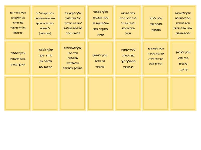 - הכינו לעצמכם רשימת "פרסים" שתיתנו לכל אחד מבני המשפחה אם תצליחו לצלוח את התקופה בניהול נבון ובמינימום גירעון.