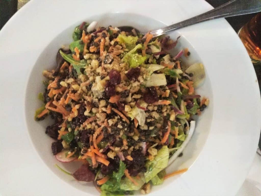 המנה השנייה שבחרנו להתחלת החגיגה היתה סלט עדשים שחורות (62 שקלים) שזה כשמו כן הוא, עדשים שחורות עם גזר, בצל סגול, צנונית, פלפל חריף, עשבי תיבול, אגוזי מלך וחמוציות, ברוטב וינגרט הדרים וסילאן. מנה שיכולה להיות גם עיקרית לצמחוני או טבעוני או סלט טעים עם מגוון טעמים. שווה ביותר.
