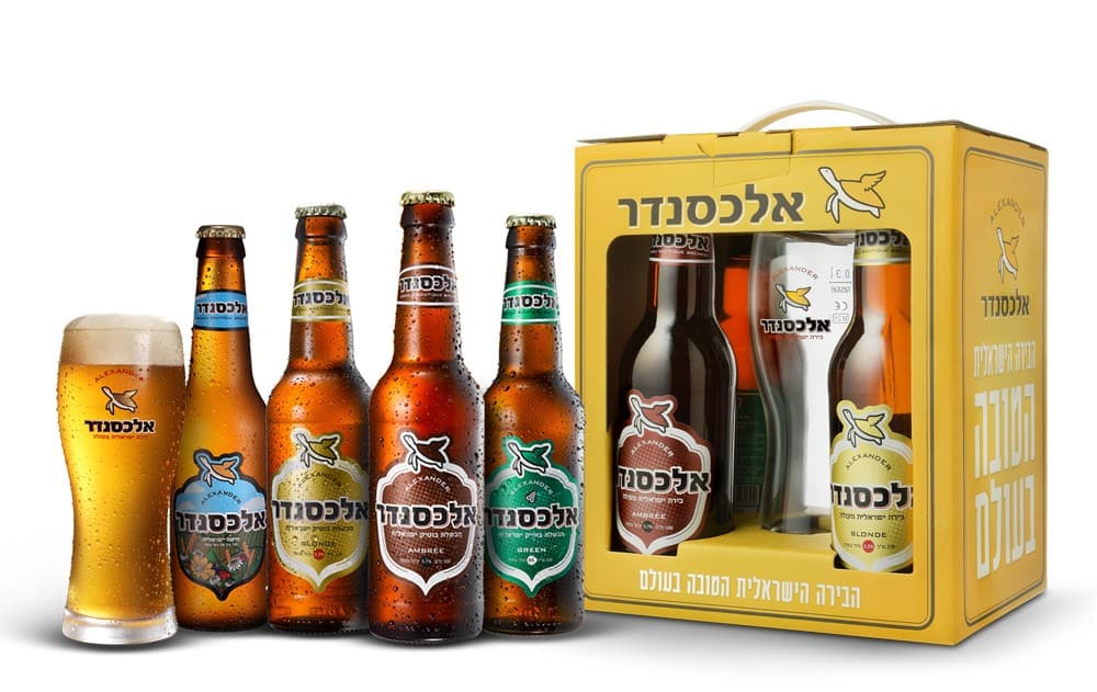 בירה אלכסנדר עם מארז מעוצב הכולל את ארבע סוגי הבירה המובילות של המבשלה