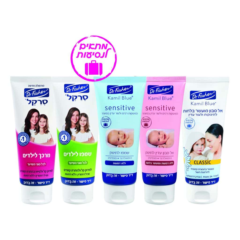 ד"ר פישר עם מוצרי סרקל וקמיל בלו בגודל מוקטן מיוחד לנסיעות
