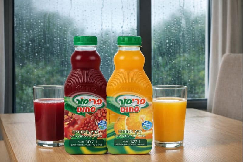 מיץ תפוזים ומיץ רימונים סחוט טבעי של פרימור לחורף (צילום אראל סגרון)