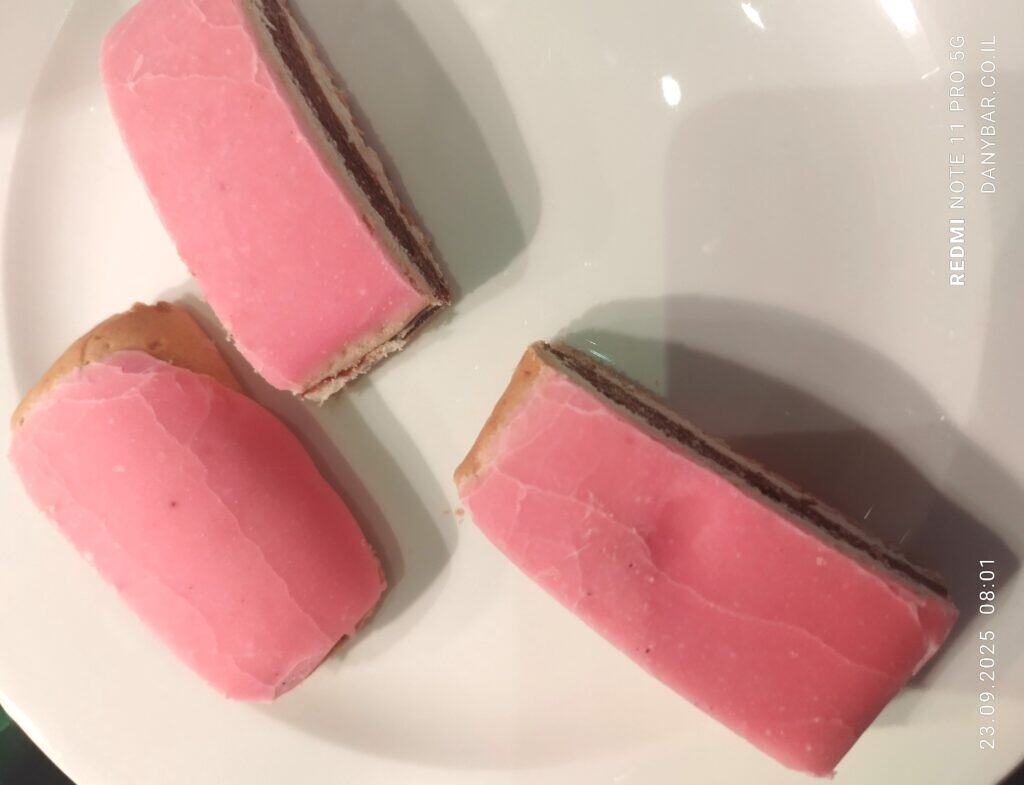 - אופים 12-15 דקות, עד שהעוגיות קשות בהיקף אך עדיין בהירות במרכזן. הערה: חשוב שלא ישחימו מדי, כדי לשמור על המראה הוורוד שלהן