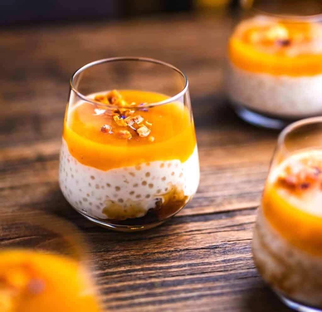 - מחזירים את פניני הטפיוקה לסיר וממשיכים לבשל עוד כמה דקות עם הקרם קוקוס, מייפל ותמצית וניל ומערבבים לאיחוד