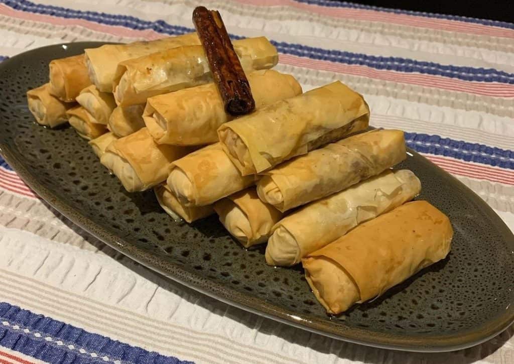 תחליף יהודי למשולשי הפרג שמכונים אזני המן ||| פינוק פריך ומגולגל מהמסורת היהודית היוונית והטורקית ||| יהודי קהילות הבלקן התאימו את הסיגר פילו המתוק ונתנו לו את הכינוי לפורים של אצבעותיו של המן ||| פינוק מתוק לפורים ובכלל מבצק פילו שממולא בשקדים קצוצים ותבלינים חמים כמו קינמון ולא בפרג המקובל המרכז אירופה ||| כל הפרטים והמתכון בהמשך…
