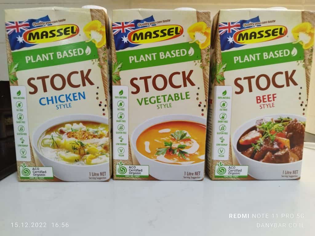 *ציר נוזלי של Massel מגיע בטעמים: ציר בטעם בקר – טעם עמוק, מתאים לתבשילים ארוכים | ציר בטעם עוף – קליל, מתאים למרקי ירקות ולבישול קטניות | ציר ירקות – קליל, מתאים למרקים טחונים ולבישול אורז.
