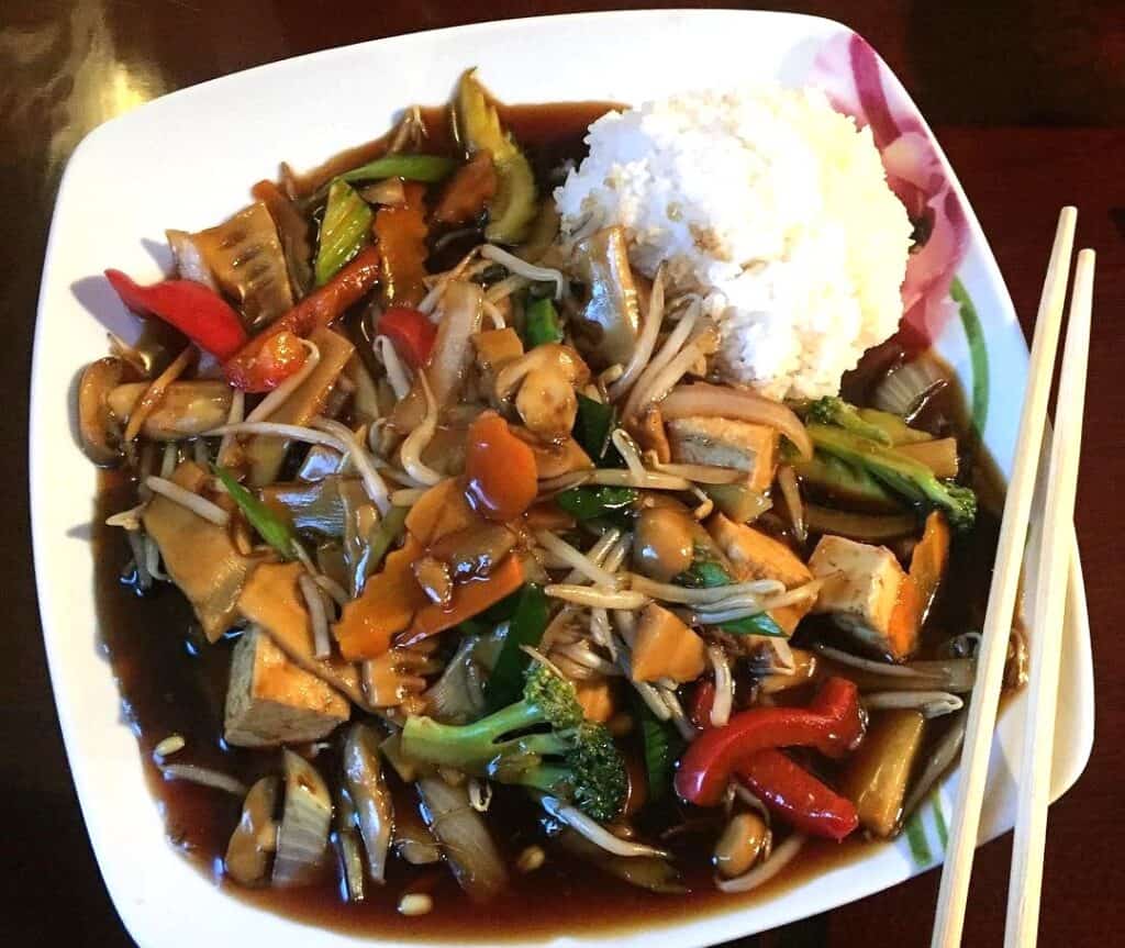 15. מגישים את הצ'ופ סואי הטבעוני עם תוספת של אורז