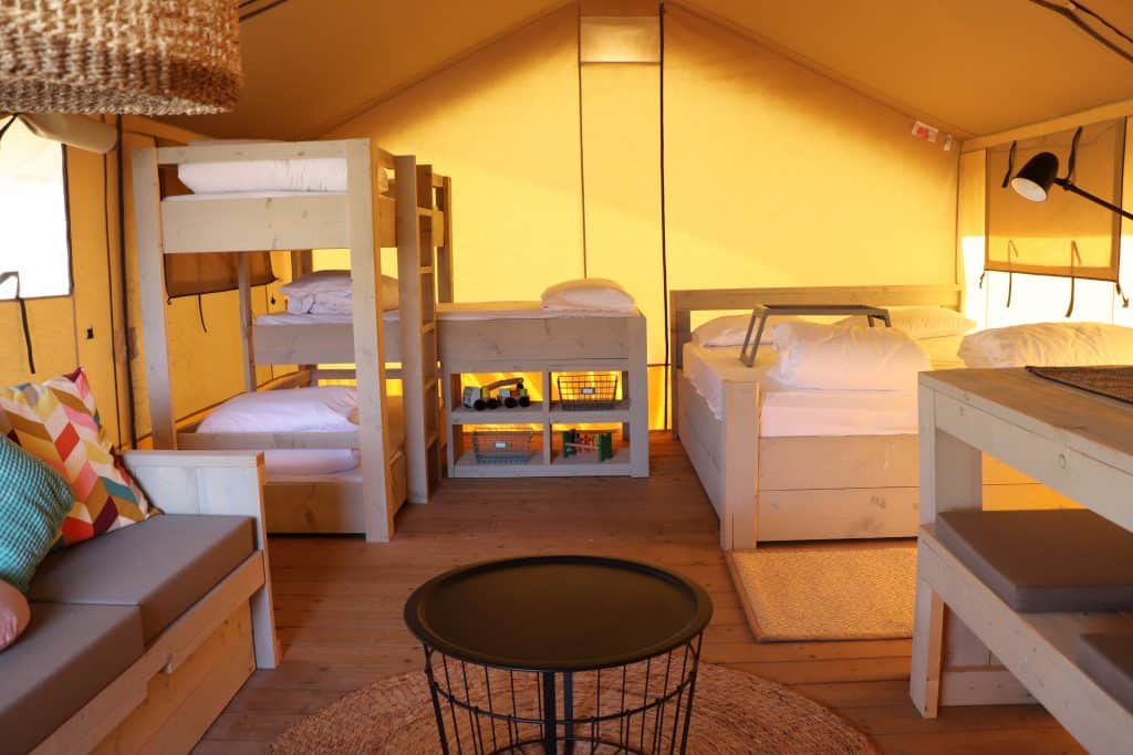 כל אוהל ממוזג, מרוהט עם שולחן אוכל, פינת ישיבה, מיטות ומצעים ומרפסת אישית מרוהטת.