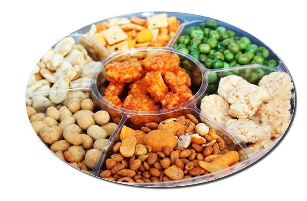 הרכב מארז 1: קשיו, שקדים, פיסטוק, בוטנים קלויים, חטיף בוטנים – רביולי, חטיף יפני, חטיף תירס מצופה. מארז 2: אפונה ואסבי, פריכיות, פריכיות חריפות, קבוקים, תערובת אלמנדוס, מנצ'ס, חטיף תירס מטובל.
