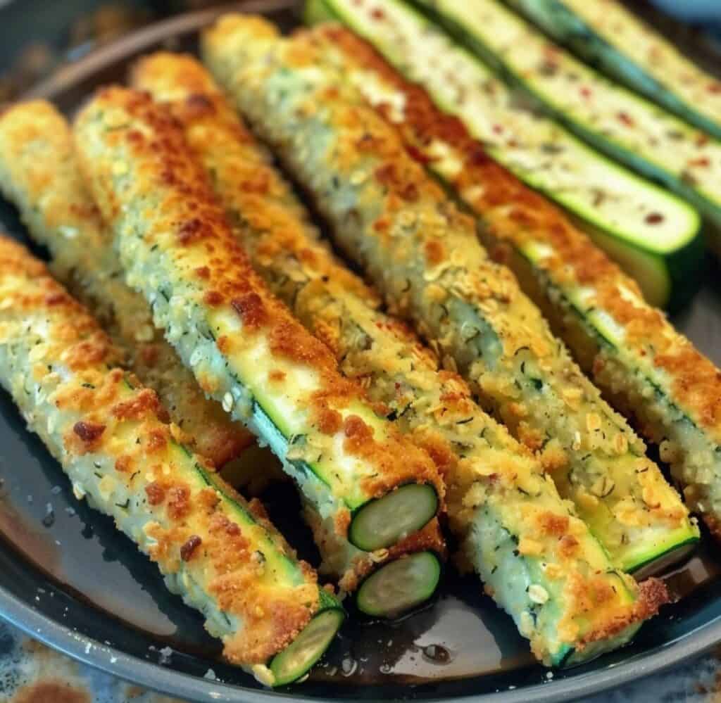 חטיף אפוי קליל ובריא, שמצליח לשלב ירק עדין כמו קישוא עם ציפוי פריך וממכר ||| במקום פירורי לחם רגילים משתמשים בשיבולת שועל גרוסה דק, מה שהופך את המנה לעשירה יותר בסיבים ומזינה יותר ||| הציפוי המתובל הוא שילוב שמעניק למקלות טעם עשיר וארומטי בלי צורך בטיגון ||| התוצאה היא מקלות קישוא זהובים, פריכים מבחוץ ורכים מבפנים, שמתאימים כנשנוש בכל שעה ביום לצד כל מטבל אהוב ||| פתרון מעולה למי שמחפש חטיף “מרגיש כמו ג׳אנק” אבל בפועל עשוי מחומרים טובים ובריאים ||| דרך מהנה להכניס קצת ירקות נוספים לתפריט תוך כדי הנאה מפריכות מספקת ||| כל הפרטים והמתכון בהמשך…